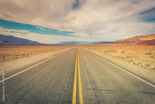 © Wirestock, Fototapeta premium Desolate road through Death Valley in California.