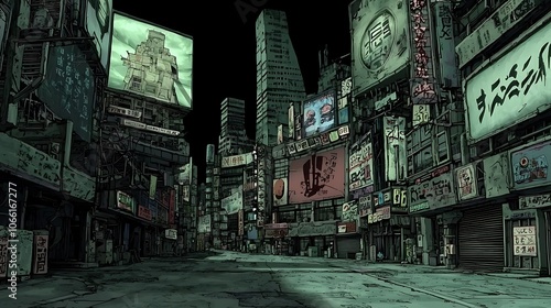Fototapeta premium Desolate Urban Street with Neon Signs and Graffiti.