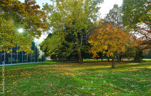 Naklejka premium Dessau, Germany, autumn season and view to the park and the new Bauhaus museum