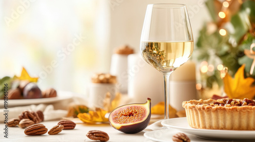 © Pisahouse, Naklejka premium Dessert Wine, A rustic table setting featuring a glass of dessert, captured in high fidelity, highlighting elegance and warmth in home decor.