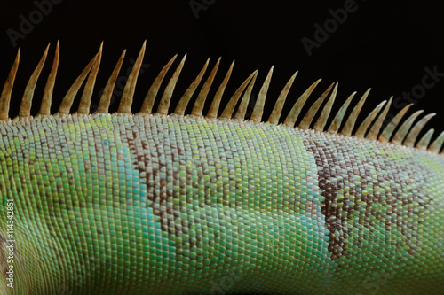 Naklejka premium detail close-up view of the back and spine of sleeping marine iguana showing scales