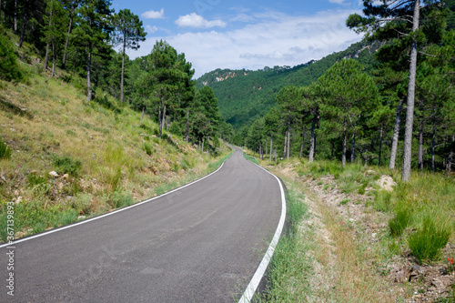 Fototapeta premium Detail of a steep mountain road, seen from the asphalt.