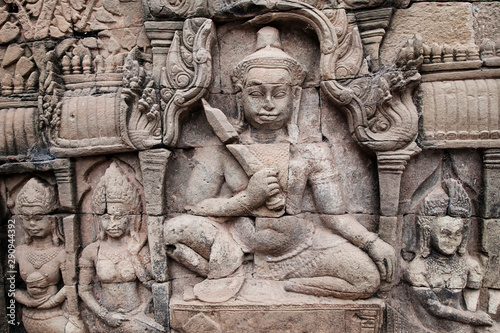 Fototapeta premium Detail of bas-reliefs carved into the walls of the temple of Bayon, Angkor Thom, Siem Reap, Cambodia