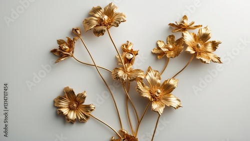 © AugmentArt, Fototapeta premium Detail of golden flowers isolated over a white background.