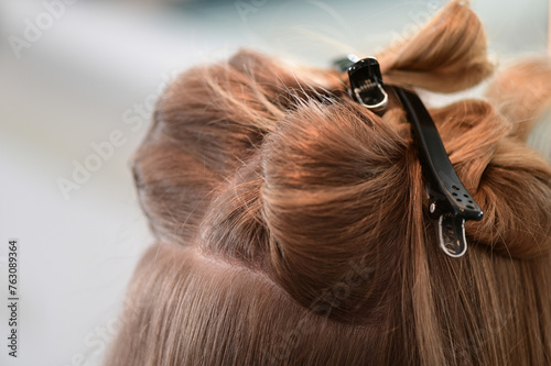 Obraz premium Detail of hair clips on a blonde client in a hair salon