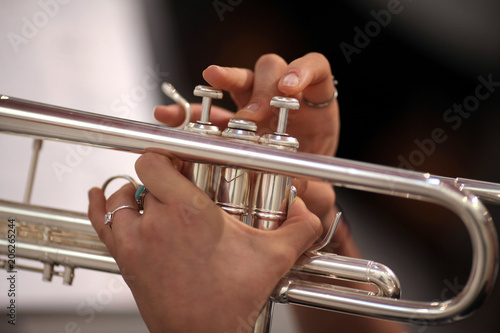 Obraz premium detail of hands that play the trumpet
