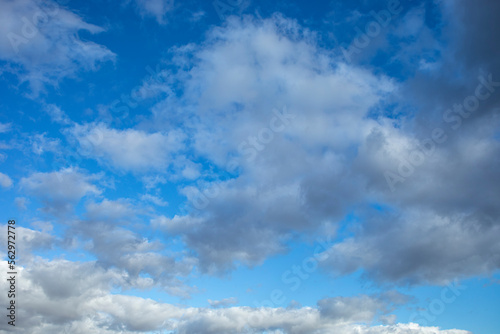 Fototapeta premium Detail of intense blue sky in broad daylight with fluffy white cumulus