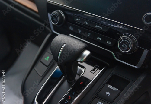 Obraz premium Detail of modern car interior focus on gear stick, Automatic transmission in luxury car