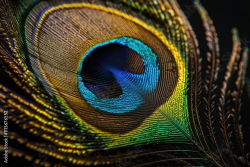 © darshika, Obraz premium Detail of peacock feather eye on black background