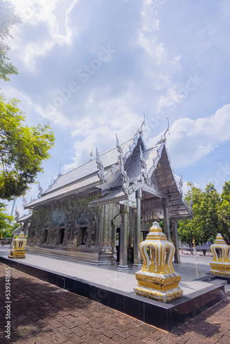 © Sarin, Naklejka premium Detail of the Steel Building in Thai temple