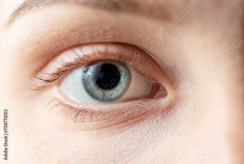 © Vladimir Arndt, Obraz premium Detail view of blue iris eye. Macro shot.