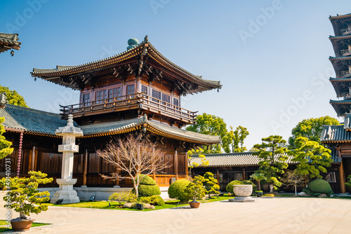 © Zimu, Obraz premium Detail view of the traditional Chinese architecture in Baoshan temple, an antique Buddhism temple in Shanghai, China.