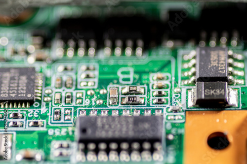 Fototapeta premium detail with selective focus of an electronic circuit board in Brazil