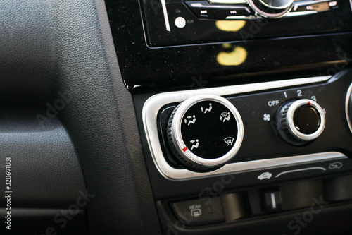 Fototapeta premium Detail with the air conditioning button inside a car.Control panel car air conditioner dashboard / console Technology in a modern car.Modern interior details.