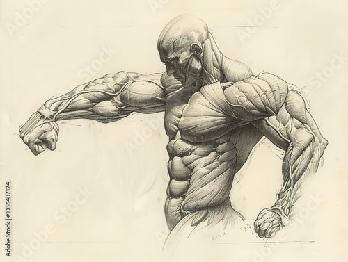 Fototapeta premium Detailed Anatomy Drawing of a Muscular Human Figure
