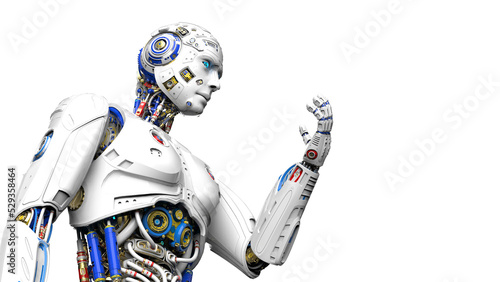 Fototapeta premium Detailed appearance of the white AI robot under white background. Concept...