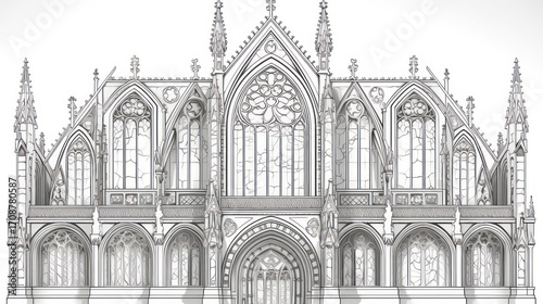 © muhfuadi, Fototapeta premium Detailed architectural drawing gothic cathedral front