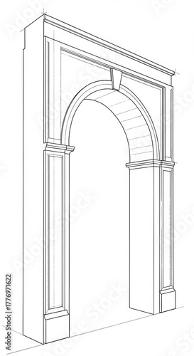 © Ariestia, Fototapeta premium Detailed architectural drawing illustrates a classical semicircular arch entryway structure