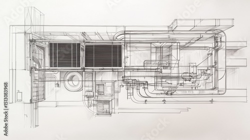 © aleks, Obraz premium Detailed architectural sketch of mechanical systems in a commercial building