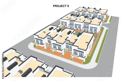 © Lydia Sokor, Naklejka premium Detailed architectural two story townhouse blueprints and drawings. Vector illustration