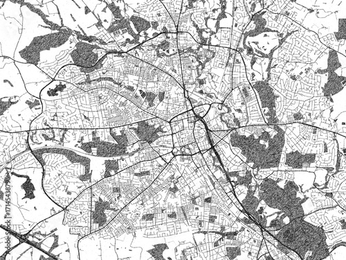 Naklejka premium Detailed artistic sketch map of Bolton, United Kingdom, in monochrome black...