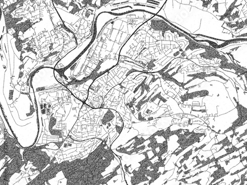 Naklejka premium Detailed artistic sketch map of Hattingen, Germany, in monochrome black and...