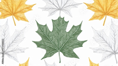 © Yonus, Fototapeta premium Detailed Autumn Maple Leaves Seamless Pattern