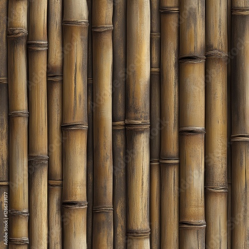 Fototapeta premium Detailed Bamboo Stalks Forming a Natural Wall, Bringing a Touch of Eastern...