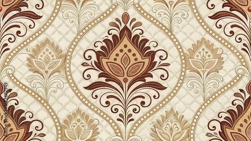 © Oksana, Fototapeta premium detailed baroque seamless pattern with damask floral motifs in shades of brown and cream. This image can be used as a background on websites or blogs about interior design, luxury goods, fashion