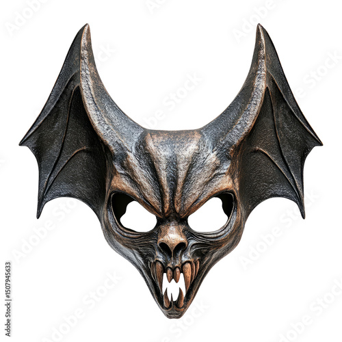 Naklejka premium Detailed Bat Creature Mask with Horns and Fiery Expression