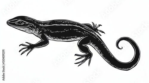 © sirisak, Naklejka premium Detailed black and white artistic drawing of a lizard in intricate linework