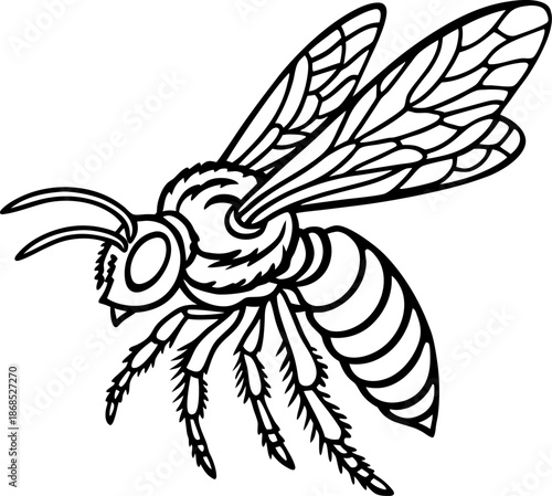 Obraz premium detailed black and white bee illustration with wings and segmented body