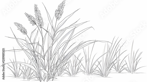 © artzone, Naklejka premium Detailed Black And White Botanical Illustration Of Lush Foliage
