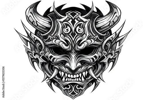 © Shah Putra, Fototapeta premium Detailed black and white demon mask sketch