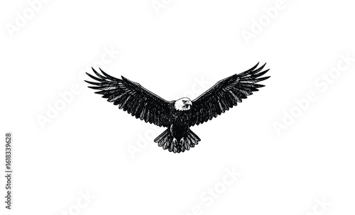 © Mr. Stocker, Fototapeta premium Detailed black and white drawing of a majestic bald eagle in flight. Vector retro hand drawn illustration