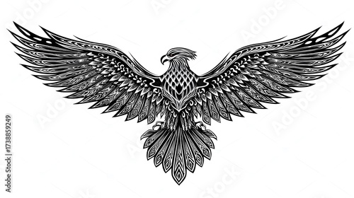 © NaiGraphic, Obraz premium Detailed Black and White Eagle Illustration in Tribal Style
