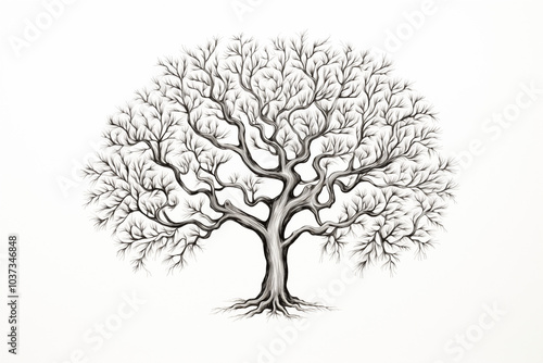 Obraz premium Detailed black and white illustration of a bare tree with intricate branches