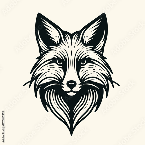 © Flyura Shakembekova, Obraz premium Detailed black and white illustration of a fox's head