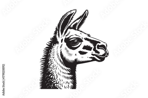 © Sadek, Fototapeta premium Detailed black and white illustration of a llama head