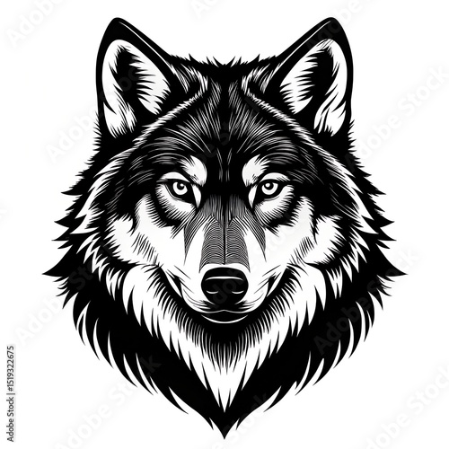 Fototapeta premium Detailed Black and White Illustration of a Wolfs Face