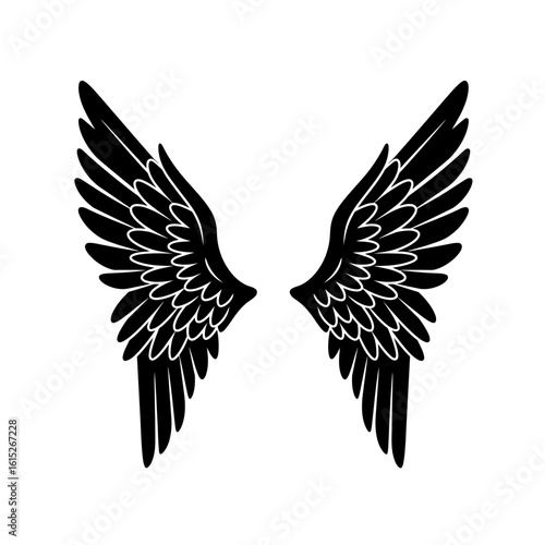 Fototapeta premium Detailed black and white illustration of two wings silhouette
