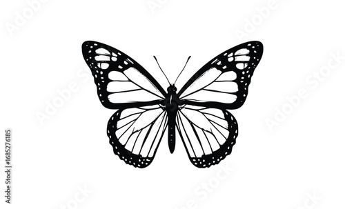 © Mr. Stocker, Obraz premium Detailed black and white monarch butterfly silhouette. Vector retro hand drawn illustration