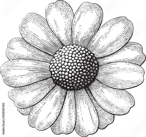 © Rysak, Obraz premium detailed black and white of a daisy flower.