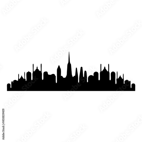 © Atique62, Naklejka premium Detailed Black and White Silhouette of a Middle Eastern Cityscape