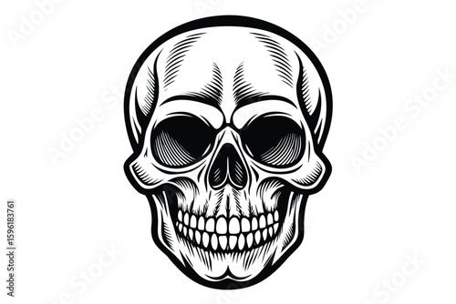 Fototapeta premium Detailed Black and White Skull Illustration on a White Background for Tattoo...