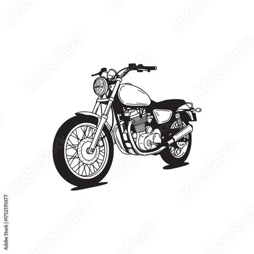 Obraz premium Detailed black and white vector illustration of a classic motorcycle