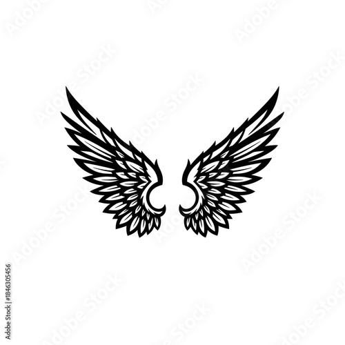 © happy, Fototapeta premium Detailed Black and White Wings Illustration for Graphic Design.