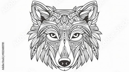 Fototapeta premium Detailed black and white wolf head mandala design, perfect for coloring...
