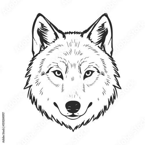 Naklejka premium Detailed black and white wolf illustration with intricate features