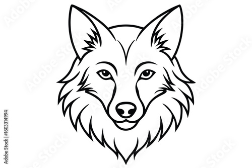 © kanchanrani, Naklejka premium Detailed Black Outline Illustration of a Wolf Head with Sharp Features and Fur